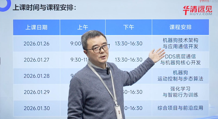 2026年1月26日至1月30日,华清远见教育科技集团精心筹办的第33届“全国高校具身智能机器人师资培训班”顺利收官,本次培训凭借前沿的课程体系与创新的教学模式,吸引了全国百余所高校的近2000名教师踊跃报名参培,参训规模盛况空前,充分彰显了具身智能机器人领域的教学热度与行业需求。课程通过 “理论精讲+虚拟仿真+项目实战” 的一体化培训模式,深耕具身智能机器人核心技术,破解具身智能机器人教学痛点,为高校人工智能与智能制造相关学科建设注入新动能。